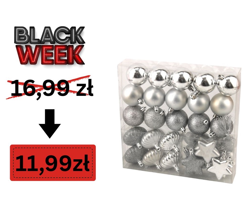 ozd.boż.bombka na choinkę 39szt. srebrna